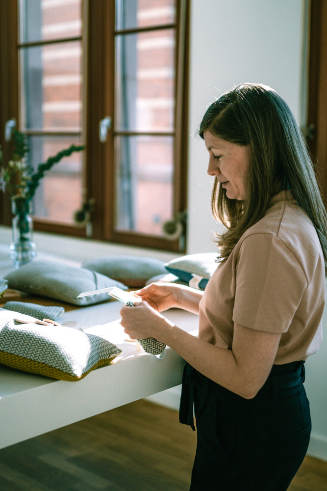 Wir fertigen unser Kuschelkissen COSY WISHES aus besonders weichem Jersey aus reiner Bio-Baumwolle. Der Stoff wird speziell für uns in Deutschland gefertigt. Genäht werden die Kuschelkissen in einem kleinen Familienbetrieb nahe Stettin an der polnischen Grenze, der auf die Verarbeitung der weichen und stretchigen Jerseystoffe spezialisiert ist.