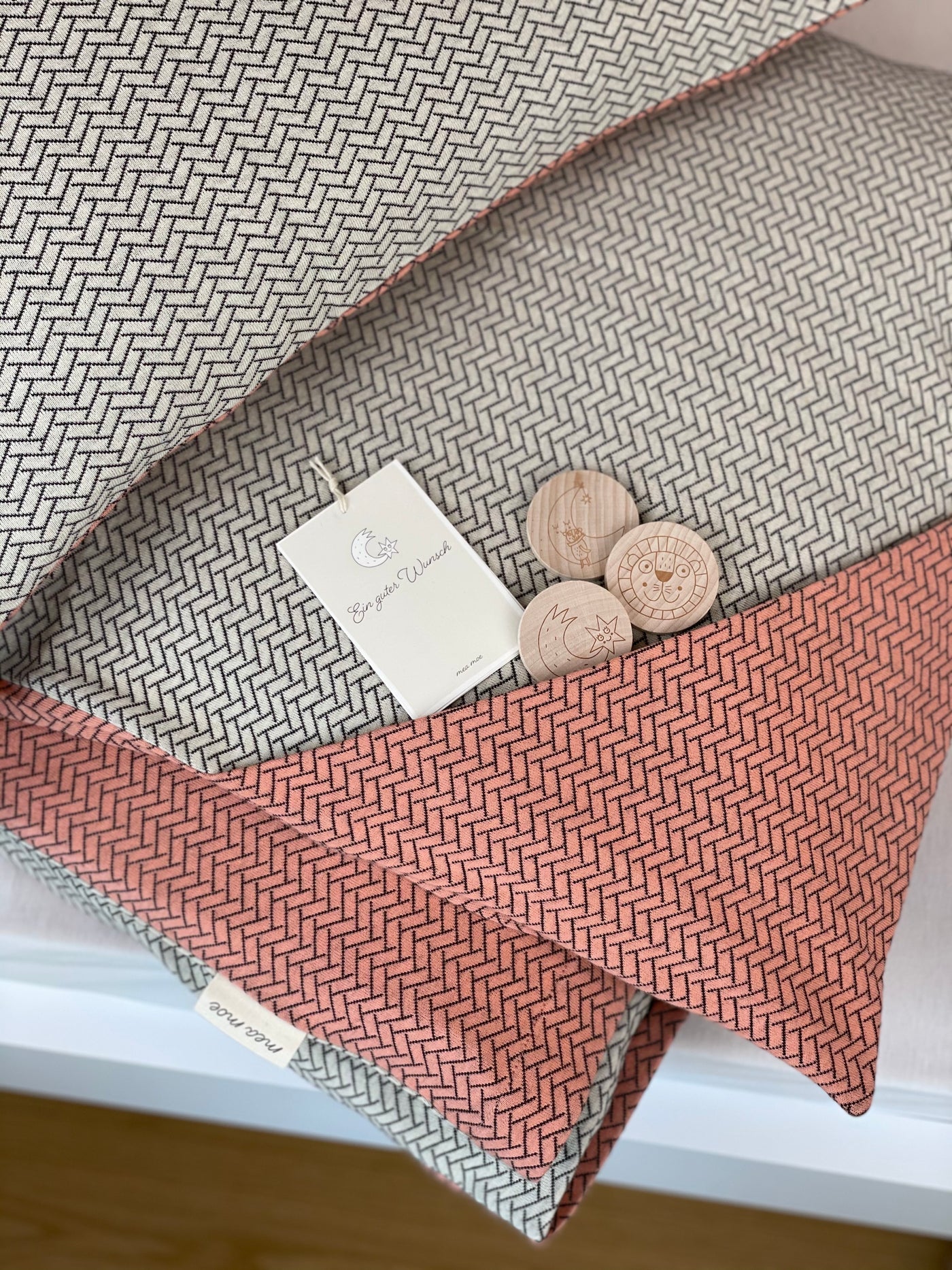 So ist das COSY WISHES Kuschelkissen mit den Wunschtalern und der versteckten Zaubertasche entstanden. Die Kinder werden größer und sie haben eigene Themen. Im Alltag kann das leicht untergehen. Daher habe ich ganz bewusst nach einem Ritual gesucht, das uns Raum gibt für Herzensdinge. Ich wollte meine Kinder schon früh befähigen ihre emotionalen Bedürfnisse auch selbst zu äußern. Die Bilder auf den Wunschtalern sind dafür ein visueller Anker.