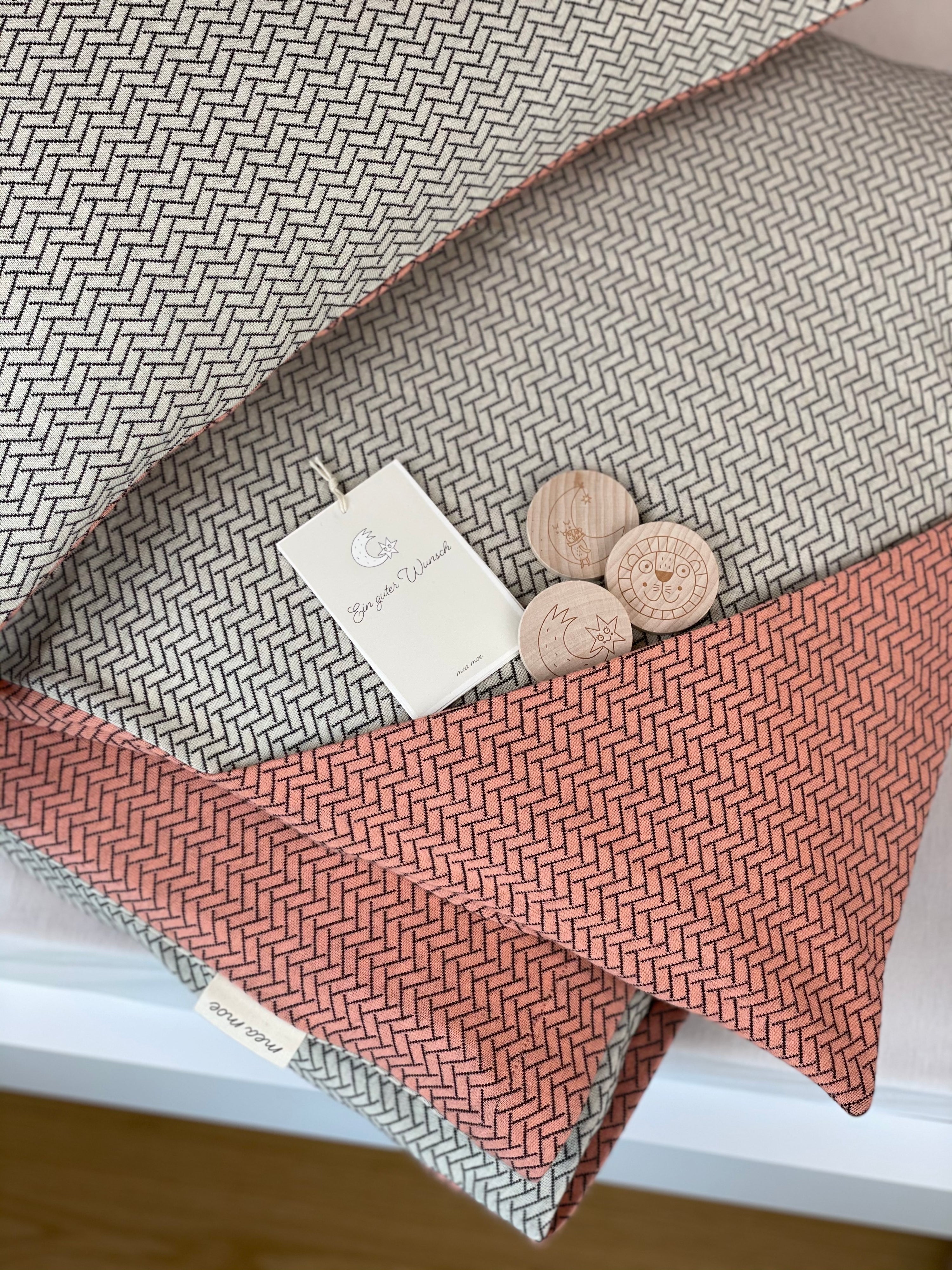 Für die Bettwäsche verwenden wir Doubleface-Jersey, einen zweilagig gestrickten Stoff. Wunderbar weich, anschmiegsam und langlebig. Als Sommerdecke auch ohne Inlay sooo kuschelig.